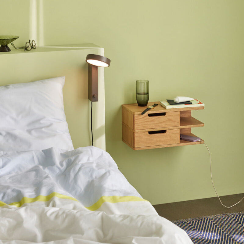 Placer den på væggen nær din seng eller i indgangen. Det bedste er, at den kan spejlvendes og bruges på begge sider af din seng - altså er det lige smart eller hvad?