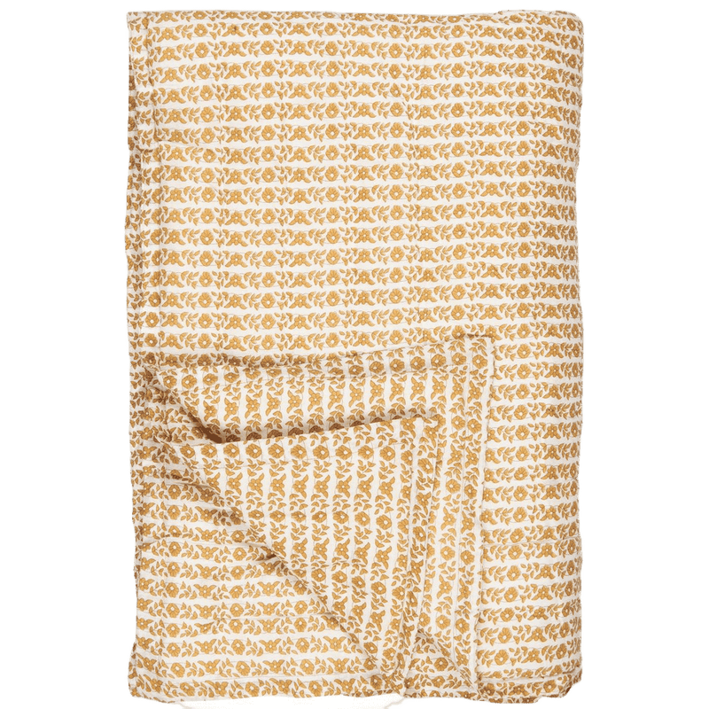 Et lækkert, vatteret tæppe i skønne farver og med et dekorativt print. Pak dig ind i vattæppet på terrassen, når det bliver lidt køligt, eller brug det som en plaid i sofaen.