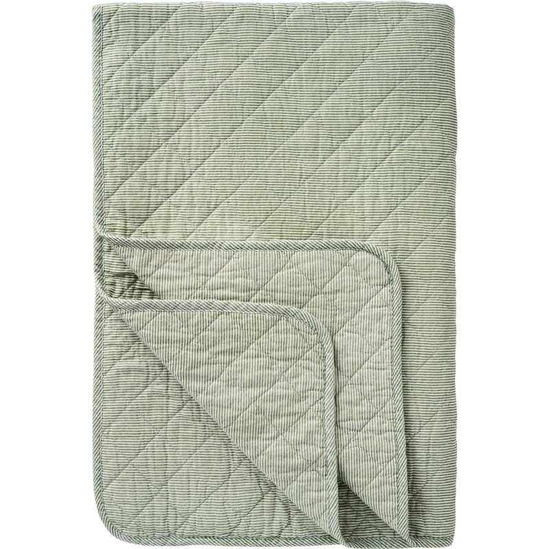 Vattæppe - Bomuld - Hvid m. Støvgrønne Mælkedrengestriber (81)