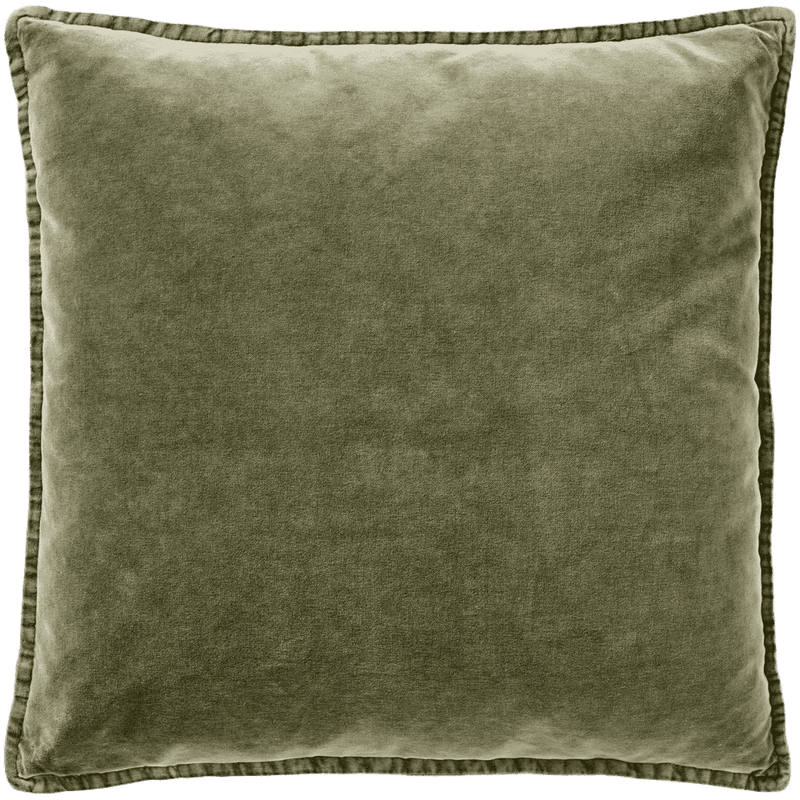 De firkantet puder i stenvasket bomuldsvelour bringer et strejf af luksus med sin underspillede stil og smukke vintage-look. Vintage-looket opnås ved at stenvaske betrækket for at opnå endnu flere nuancer i hvert pudebetræk. Dens robuste struktur og tynde kantrør gør puden endnu flottere.