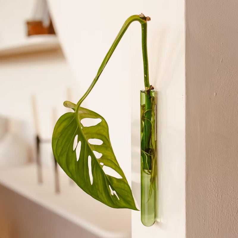 Walleaf 1-pack er en elegant, væghængt glasvase designet til stiklinger, små blomster og friske krydderurter. Med sit enkle og lette udtryk er den perfekt til at give liv til bare vægge og små hjørner i hjemmet – uden at optage plads.